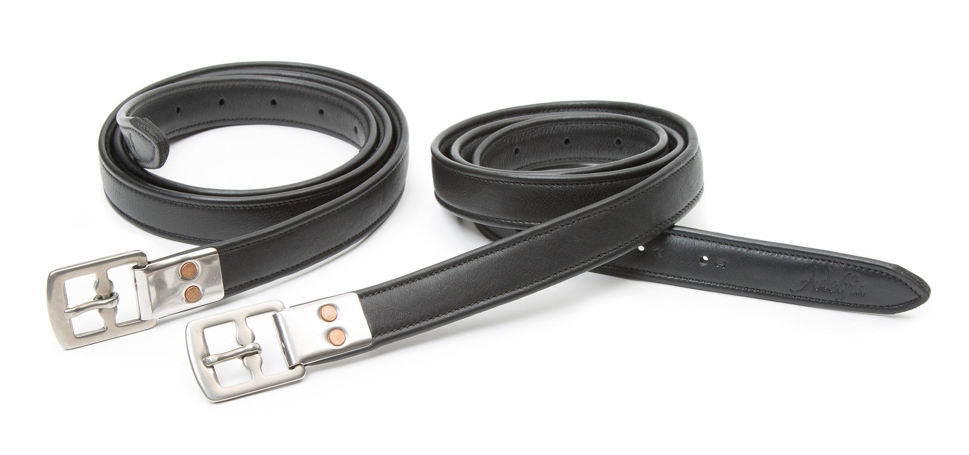 For reduced bulk and enhanced strength these Adelfia stirrup leathers benefit from a slim metal plate attaching the buckle to the leather which means there is no fold. A nylon core ensures the leathers will not stretch and extends their life. Stainless steel fittings.