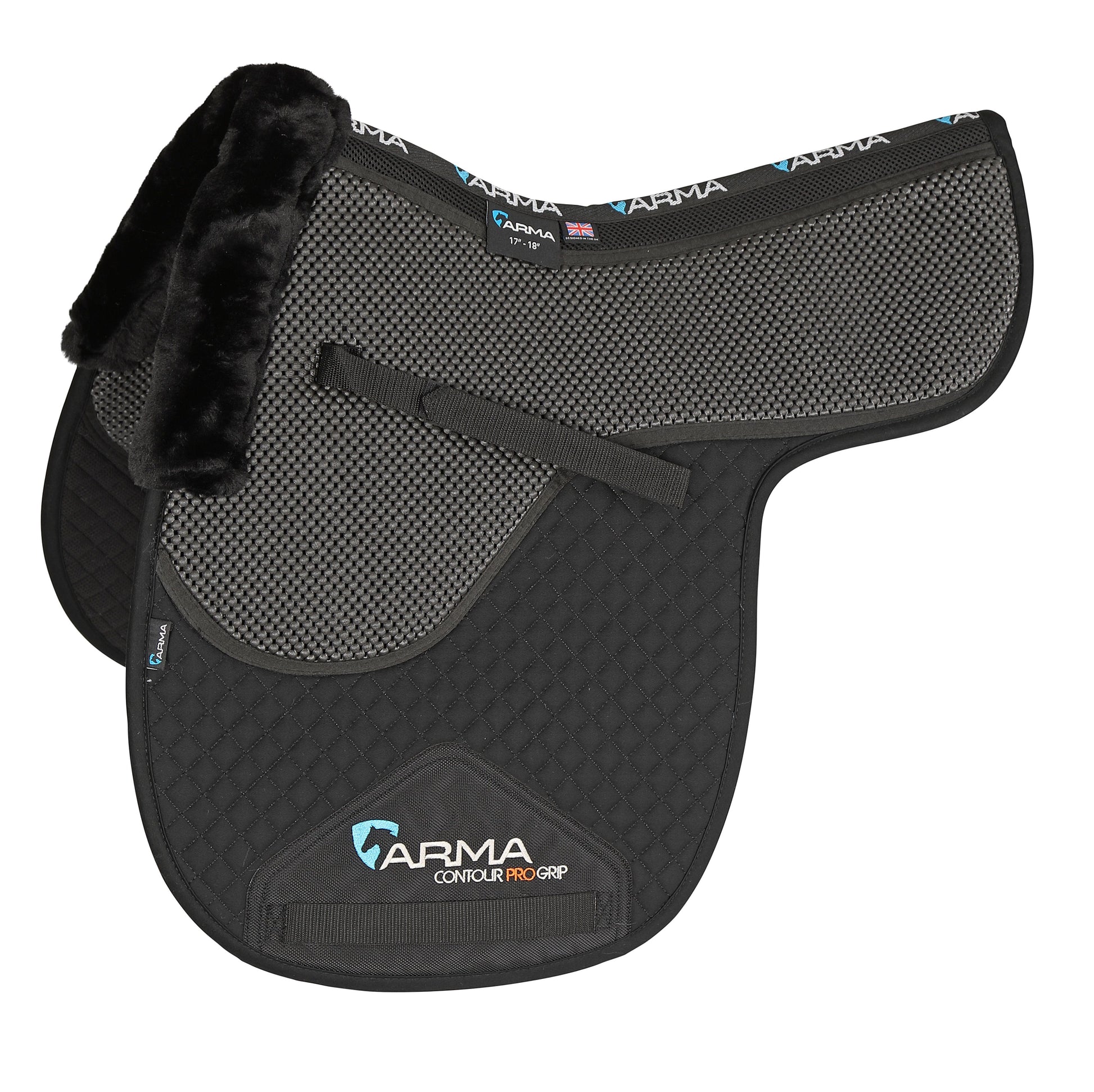 Designed with performance and comfort in mind, the ARMA soft grip numnah provides a high degree of shock absorption and slip resistant cushioning under the saddle. BREATHABLE stay-smart anti-pill 100% cotton outer. Impressive PRO GRIP SYSTEM technology keeps the pad in place and the saddle secure. Ventilated 3D AIR MOTION mesh zones along spine for increased airflow. ULTRA DRI ZONE lining instantly wicks sweat from the horse to reduce the risk of rubbing and increase comfort. SupaFleece wither trim for a luxurious touch. Girth guides and touch close retaining straps. Hardwearing girth guards. Machine washable.