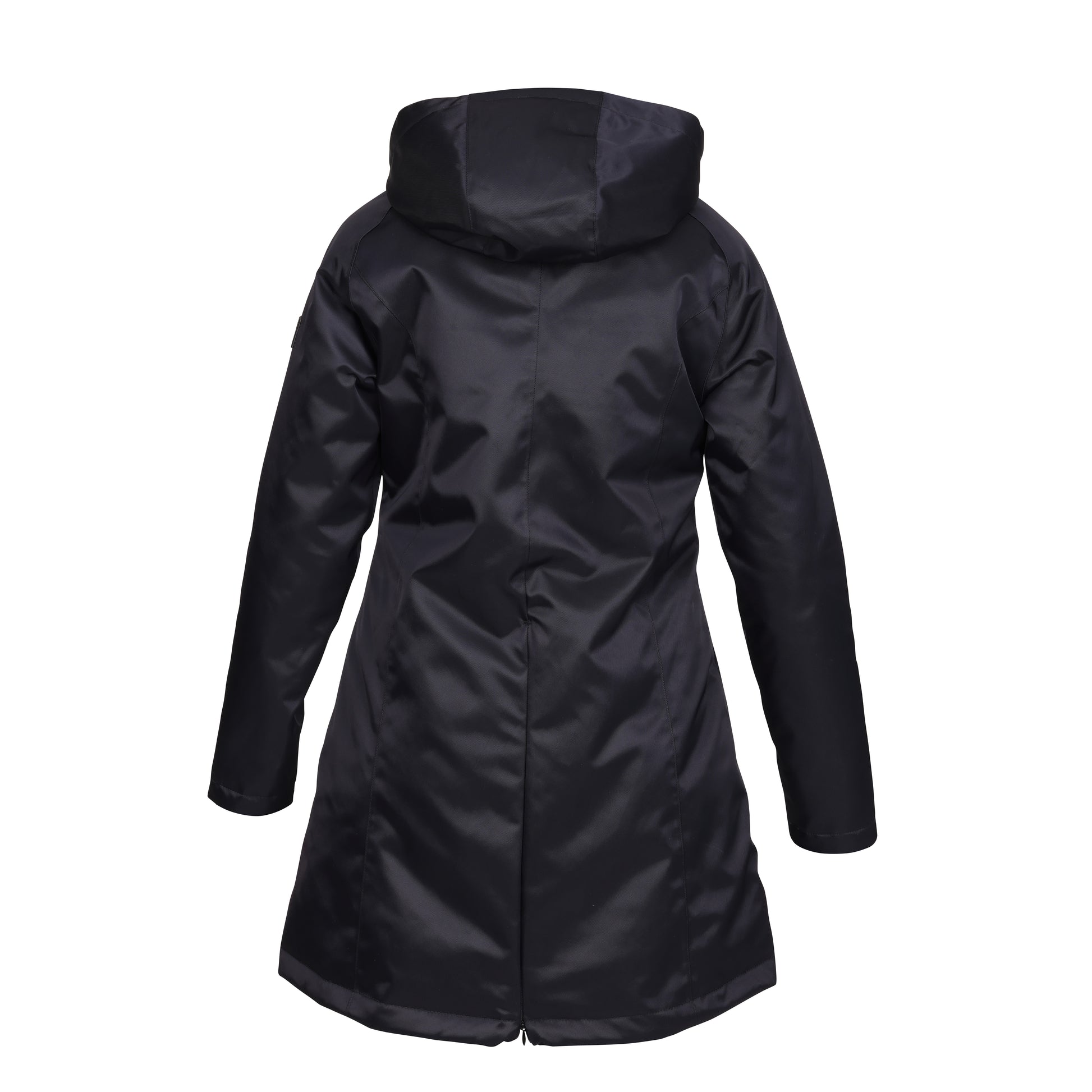 Indispensable for the winter rider, the Halcyon coat offers flexible wear options via the hidden rear zip which allows the lower back to be split for horse riding or walking comfort. The mid-thigh length coat is practical through the seasons a durable outer is waterproof and breathable, quilted lining is faced with luxe faux fur to the body, neck and inner hood for snug warmth. Further detail: mid thigh length, roomy fit for winter layers, rear riding vent, zip off hood with elastic bungees, two way front zip, chin guard, zip pullers, two outer and one inner chest zip pockets, stretch wrist cuffs, subtle embossed leopard print lining, Aubrion embroidery and prints. Outer fabric waterproof rating: 5000mm with breathability rating 5000g/m2/24h. DWR (durable water repellent) finish causes moisture to shed, bead up and roll off the outer surface of the garment to help maintain breathability.