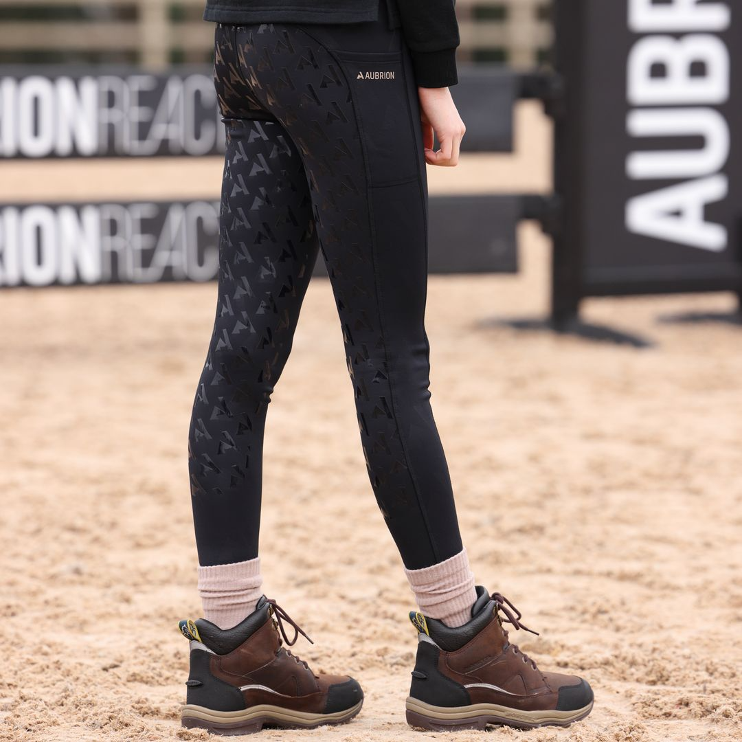 The Aubrion React Winter Tights have a soft brushed inner for insulation against the cold weather. The tights feature a full silicone seat for grip in the saddle and silicone on the inside of the supportive waistband to prevent the waistband from dropping over time. The thigh features a useful phone pocket.
