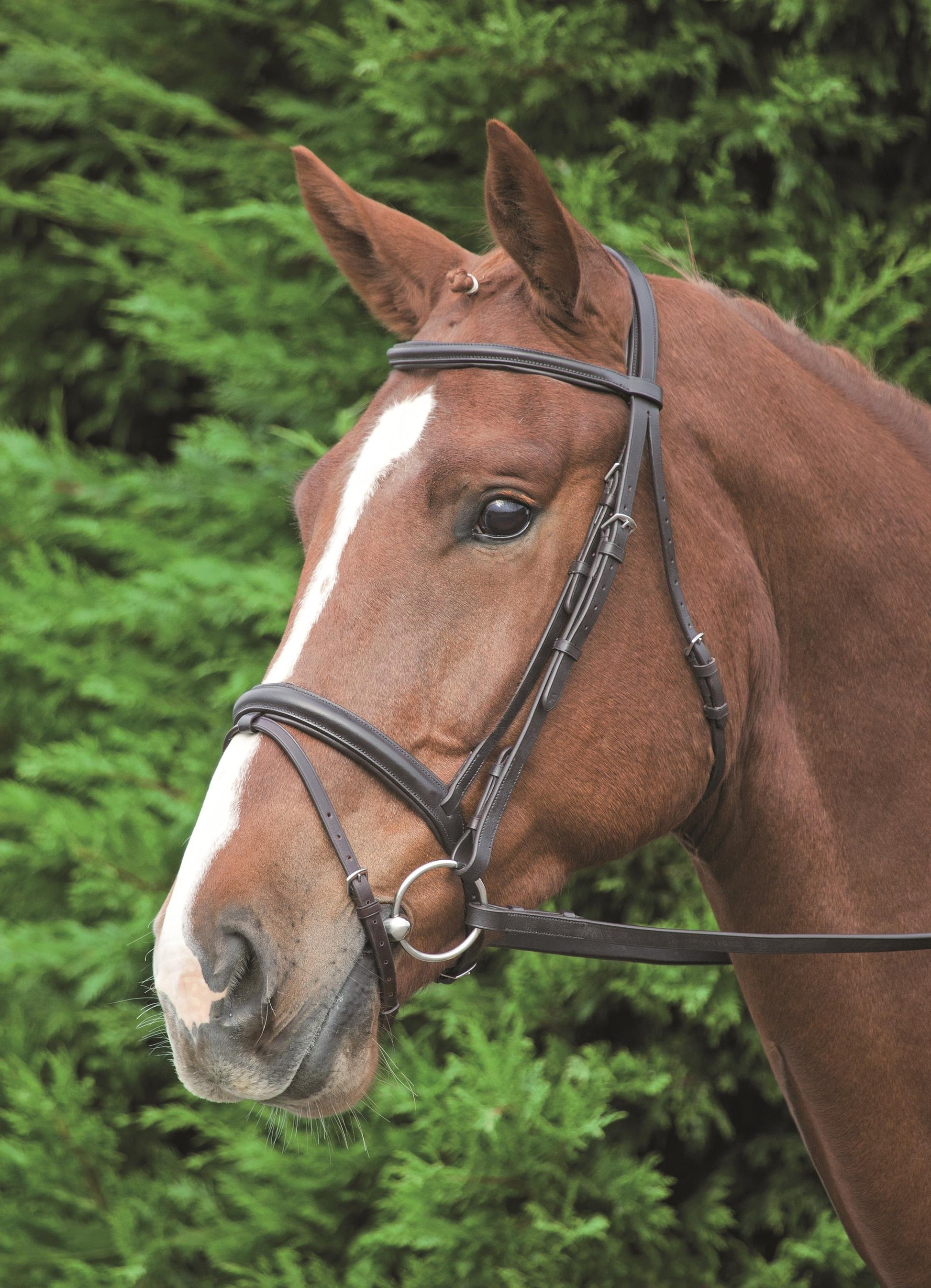 The pressure relieving headpiece benefits from comfortable padding with further cushion lining on the raised browband and flash noseband. Rubber grip reins, hook stud billets and stainless steel fittings.