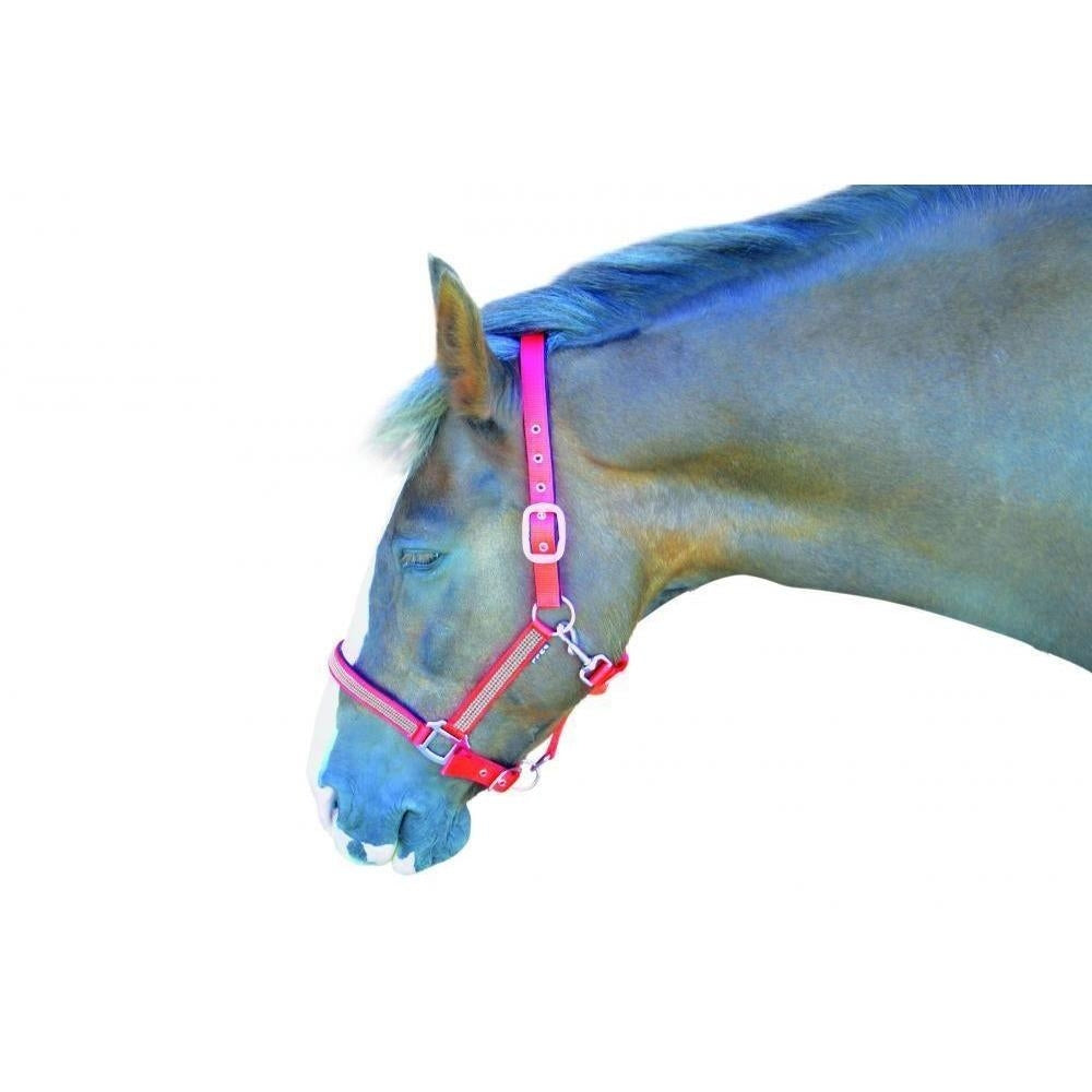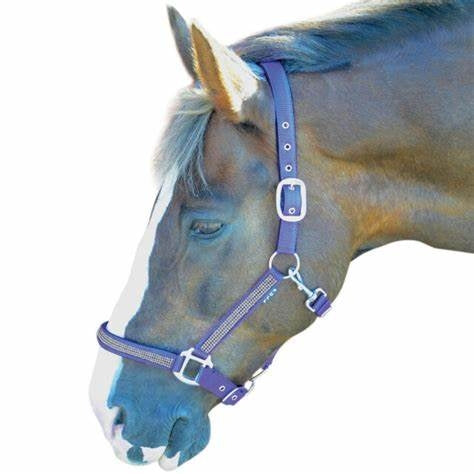 Add a bit of sparkle to your horse's wardrobe this with this gorgeous diamante headcollar which includes beautiful triple rows of diamante detailing around the nose and cheek.