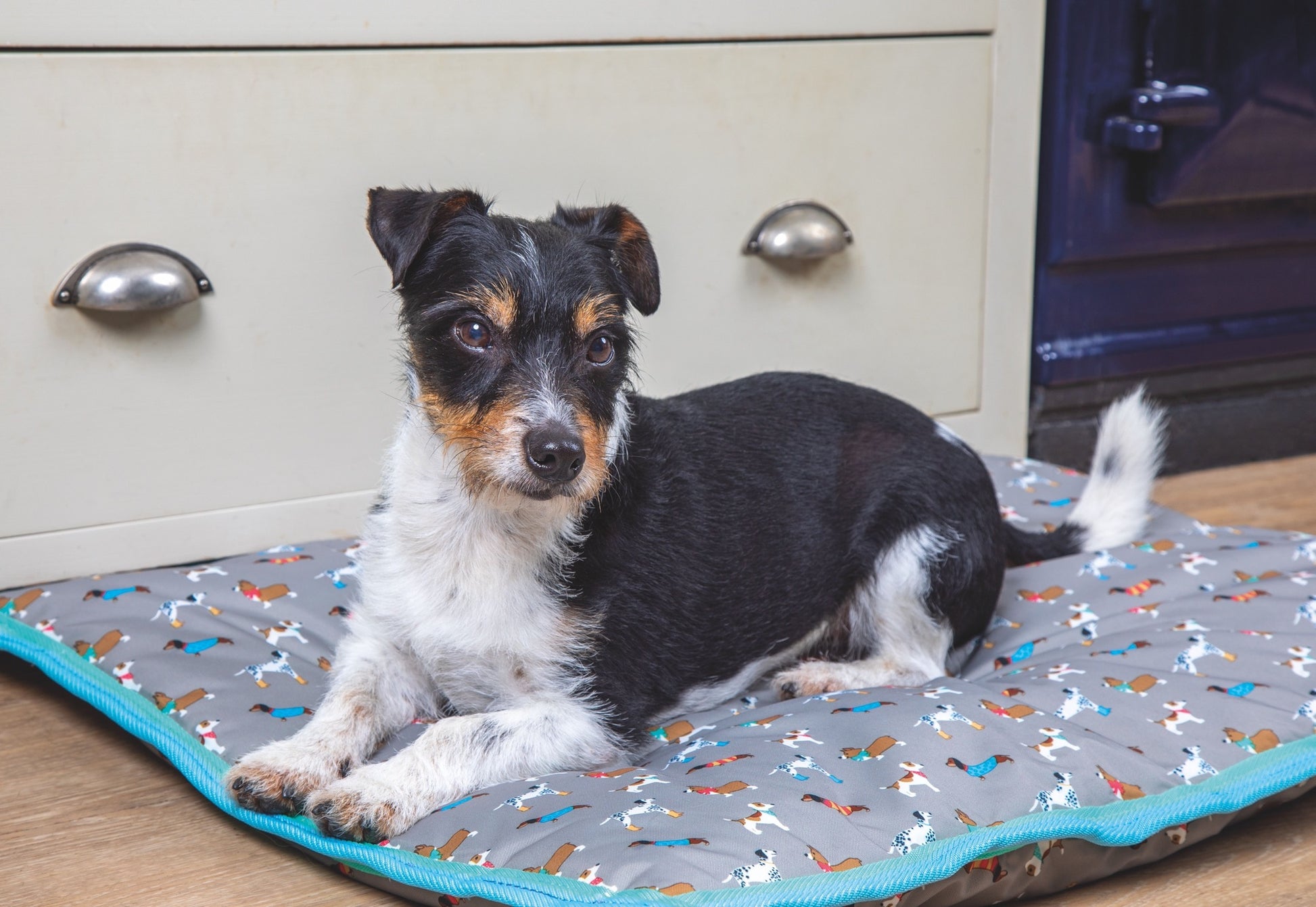 Durable, practical and comfortable, the Digby & Fox waterproof dog bed is the ideal partner for dogs who love the outdoor life. Hardwearing, fun printed fabric on both sides can be wiped clean. Resists wear and tear and won't get soggy from wet paws. Ideal for the back of the car, at home by the fire, in the office or anywhere your dog likes to lie.