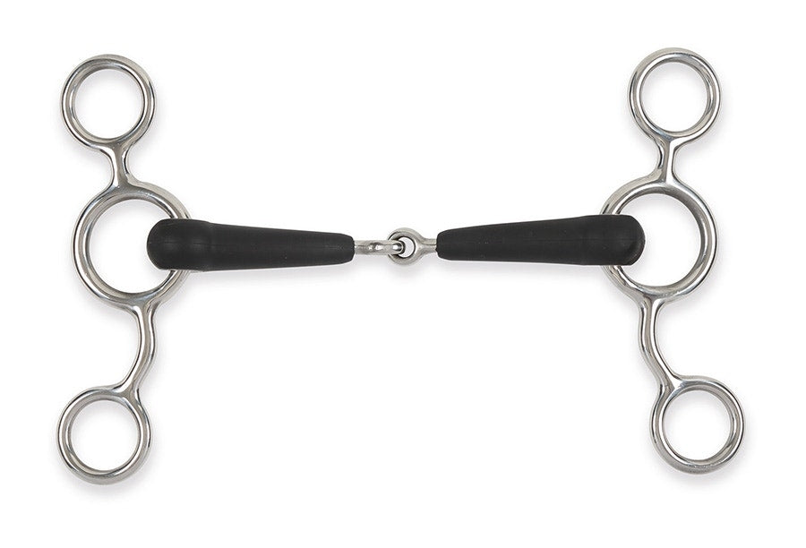 This bit works by putting pressure on the poll and the tongue. Attaching the reins to the lower ring will increase severity. Mouthpiece thickness: 15mm. Cheek height: 135 mm