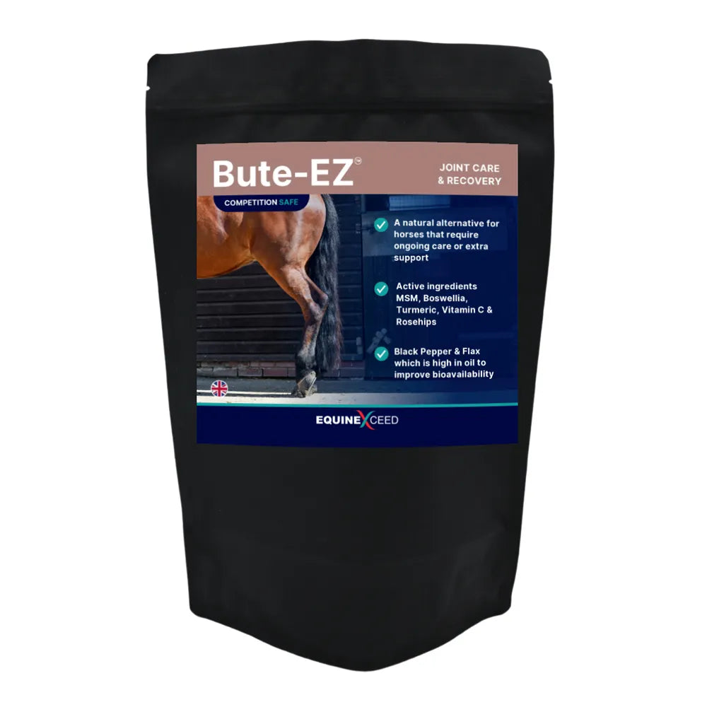 Bute-EZ™ active ingredients MSM, Boswellia and Turmeric work together to act as natural anti-inflammatories and combine with L-Arginine to help provide a healthy blood flow and maintain ease of movement. Turmeric (4375mg per scoop) is a well known anti-inflammatory, ideal for horses where joint health and mobility are compromised. Boswellia (7500mg per scoop) is a natural anti-inflammatory with a high concentrate of 65% Boswellic Acid. MSM (7500mg per scoop), can help support healthy connective tissues, cartilage, bones and hooves. Vitamin C (1400mg per scoop) is recognised as a natural anti-inflammatory and is vital for the strength and structure of connective tissues such as tendons & ligaments. Competition Safe. Conforms with the FEI Prohibited Substances List.