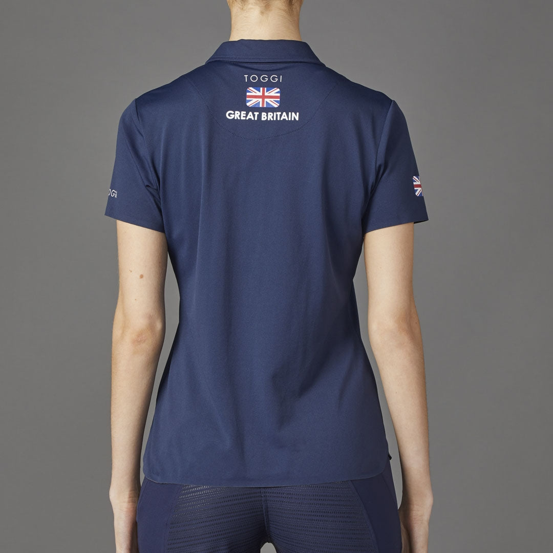 The Airy Womens Technical Polo is made from a soft Nylon and is equipped with UPF 50+ protection. Contrast concealed colour placket and branded buttons, clean unstitched cuffs and hem, reflective branding and curved side hem. The Union Jack on the back and red, white and blue branding throughout complete the team look.