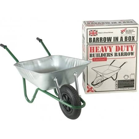 Conveniently flat-packed in a box, self-assembly required. With a galvanised pan and tubular frame with tipping nose and powder coated finish. Strong and weather resistant, with a puncture proof 350mm tyre and high impact heavy duty wheel. It has a capacity of 85 litres.