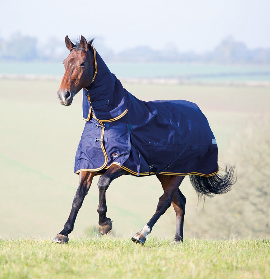 This Highlander Plus Combo turnout offers maximum coverage against the elements. An ergonomically integrated contour neck cover helps prevent pressure on the withers and helps keep the horse covered. Key features: ShireTex' 1200 denier ripstop, waterproof and breathable outer with taped seams, 200g polyfill, deep shoulder gussets, fully lined, adjustable buckle chest straps, adjustable cross surcingles and fillet strap, integrated leg strap loops, tail flap WarmaRug Compatible - Upgrade this rug's warmth rating using separate rug liners in 100g or 200g. Highlander Plus. The ultimate in hardwearing comfort.