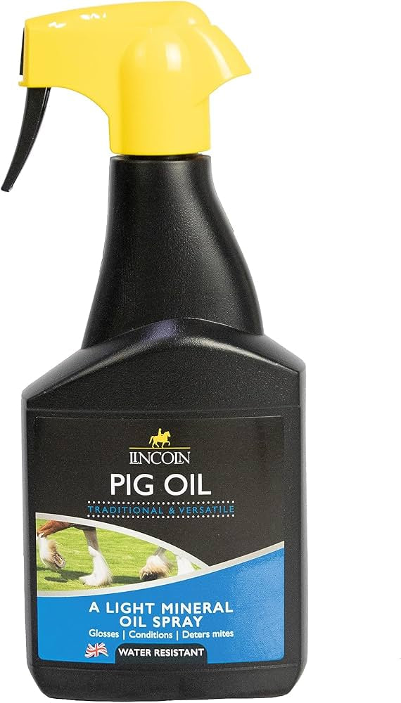 Lincoln Pig Oil spray is convenient to use and is suitable for use as a coat gloss, waterproof barrier and skin conditioner.
