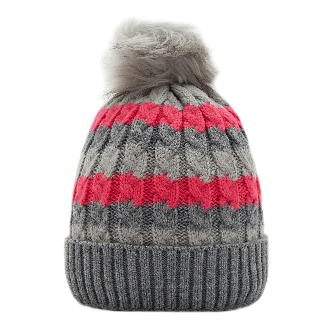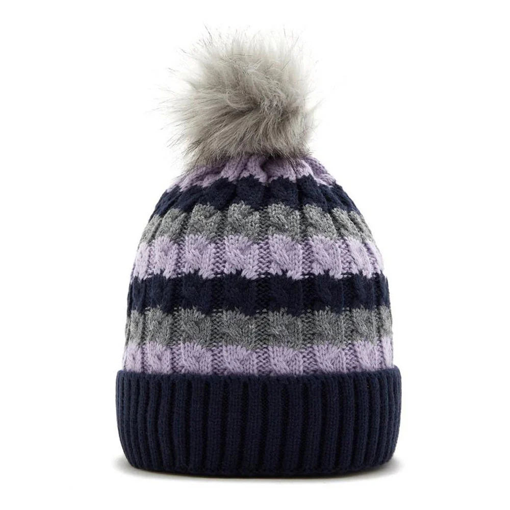 Ladies Bute Waterproof Hat, featuring a stripe-knit design and a Faux fur pom-pom. Boasts a waterproof membrane, making it ideal for Autumn/Winter. Windproof design for ultimate rain protection. Ribbed hem ensures a snug fit and in a range of fabulous colours!