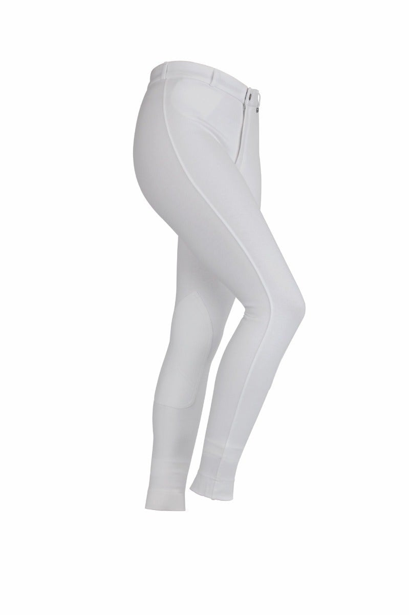 These SaddleHugger jodhpurs feature Creora® 4-way stretch knitted fabric to ensure a great fit. Self-fabric knee strappings, flat front, belt loops and inner hip pocket.