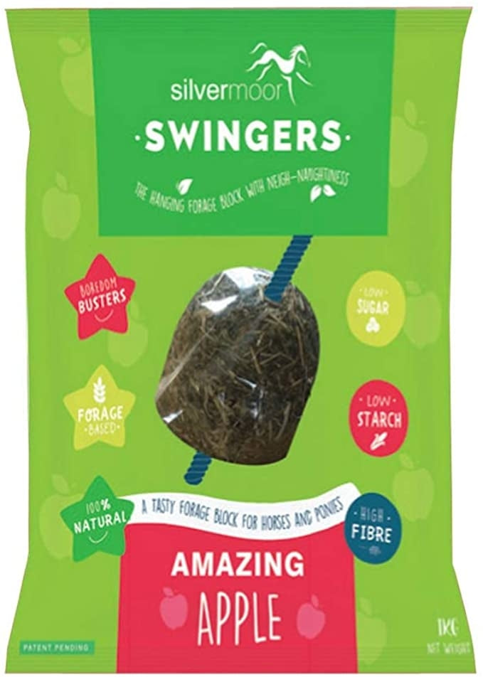 3 Exciting Flaours. Are you looking for a healthy, boredom busting, high fibre, slow-release feed for the stable? If the answer is yes look no further! Silvermoor Swingers is the only hanging forage block made from 100% natural ingredients with no added sugar.