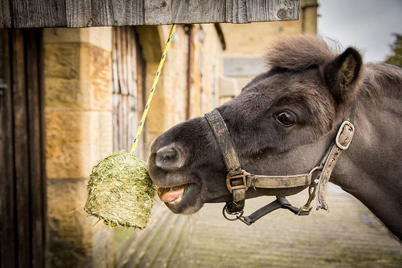 The unique swinging design means the horse has to work to be able to eat it. This means it cannot be eaten quickly and will take longer to eat than similarly sized traditional blocks of forage. Eating regularly promotes saliva production which buffers stomach acids and helps prevent against gastric ulcers.