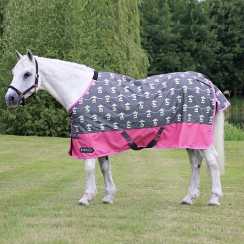 Part of the Merry Go Round collection, this funky rug is both eye-catching and practical. It features 600 denier, ripstop and waterproof material, ultra-lightweight reinforced stitched branded lining and 0g fill, enhancing breathability, as well as providing comfort and protection from the wet winter weather. Twin surcingle chest fastenings, adjustable cross surcingles and leg straps ensures the rug stays in place. A large tail flap adds that extra bit of protection.