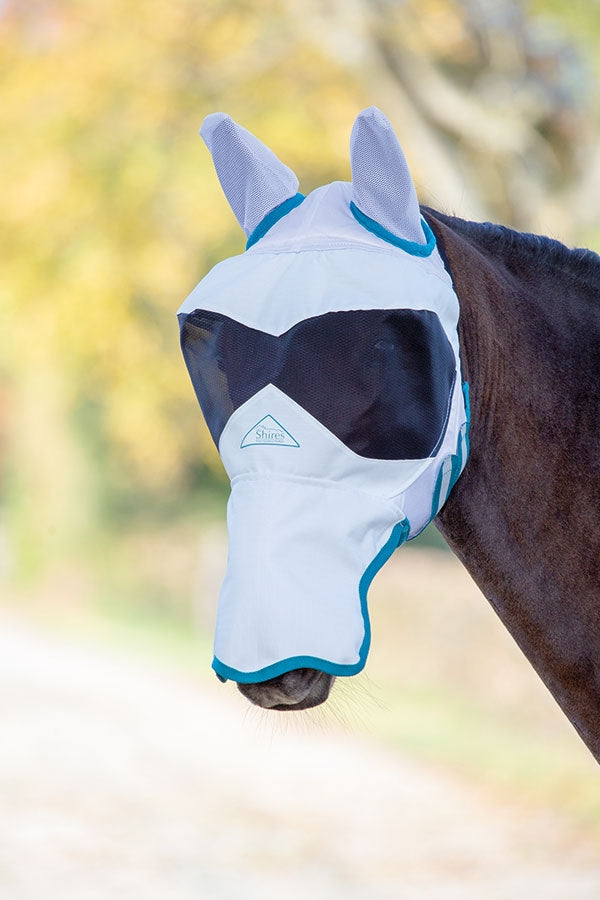 For sun sensitive horses this fly mask provides the head, cheeks and delicate nose area with 90% UV protection and a sunshield to shade the eyes. The ripstop eye mesh blocks 60% UV whilst ensuring a good level of visibility is maintained. This highly protective fly mask is excellent protection against sun burn and bleaching and particularly useful for horses with photosensitisation or pale pigmentation. Blocks bugs and biting insects by using fleece trims to ensuring a close, comfortable fit is achievable. UV protection - provides up to 90% UV protection. Effectiveness may diminish over time. Test carried out in accordance to BS EN 13758-1-2002+A1:2006.