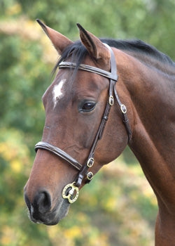 This distinctive Velociti GARA inhand bridle features fancy stitching on the noseband and browband. Solid brass fittings, and 5/8" (16mm) cheeks.