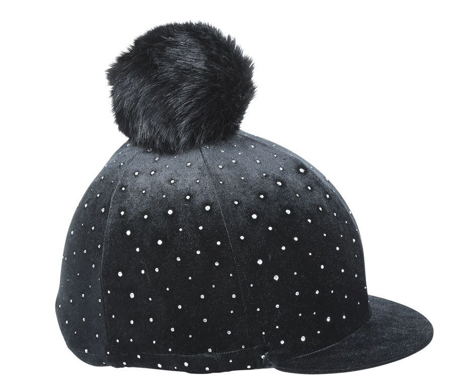 Add a bit of sparkle to your outfit with this brand new style stretchy hat cover. Soft velvet style with finished glitz diamantes all over and a pom pom on top.