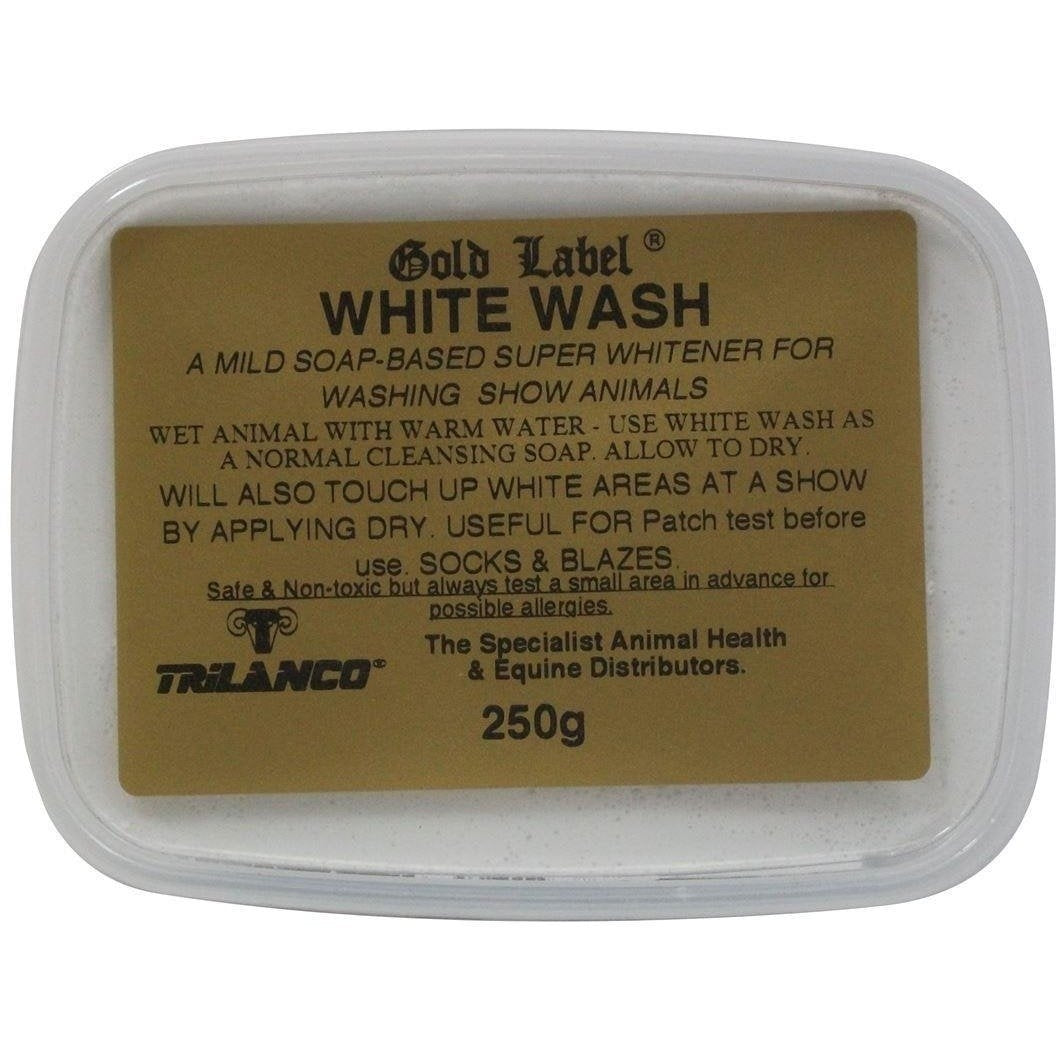 White soap block for washing cattle very white horses and dogs. Leaves a non-chalk super whitener on the coat for the duration of the show without any powder residue. May also be used for touching up white areas.